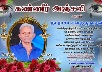 மரண அறிவித்தல்அமரர். ஆனந்தகிருஷ்ணன் செல்வகிருஷ்ணன் வல்வெட்டித்துறை கொண்டக்கட்டையை பிறப்பிடமாகவும், இந்தியா திருச்சியை வசிப்பிடமாகவும் கொண்ட திரு ஆனந்தகிருஷ்ணன் செல்வகிருஷ்ணன் 16.09.2025 செவ்வாய்கிழமை அன்று காலமானார். அன்னார் பிரேமராணியின்...
