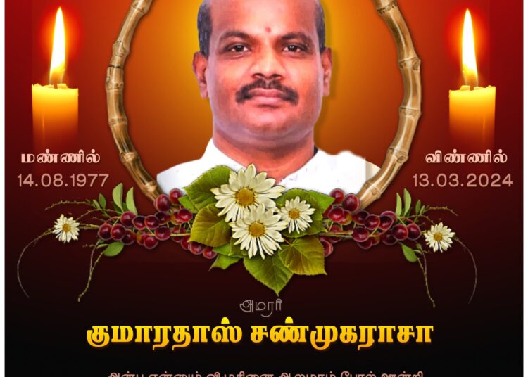 கடந்த 13.03.2024 அன்று சிவபதமடைந்த எமது குடும்பத் தலைவர் அமரர் குமாரதாஸ் சண்முகராசா அவர்களின் முதலாம் ஆண்டு ஆத்மாசாந்திப் பிரார்த்தனை எதிர்வரும் 03.03.2025 அன்று திங்கட்கிழமை எமது இல்லத்தில் நடைபெறும்.