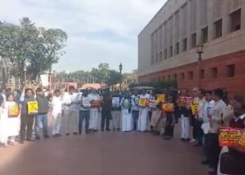 இந்திய நாடாளுமன்ற வளாகத்தில் தமிழக எம்.பி.க்கள் ஆர்ப்பாட்டம்.!